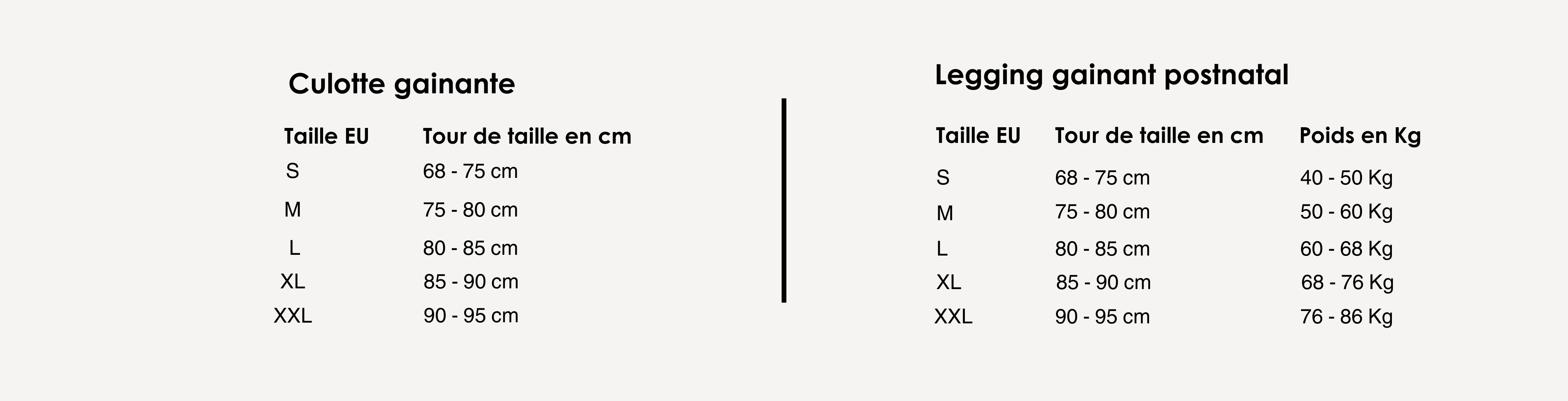 - Si vous êtes encore enceinte nous vous recommandons de prendre 2 tailles au dessus de votre taille habituelle.